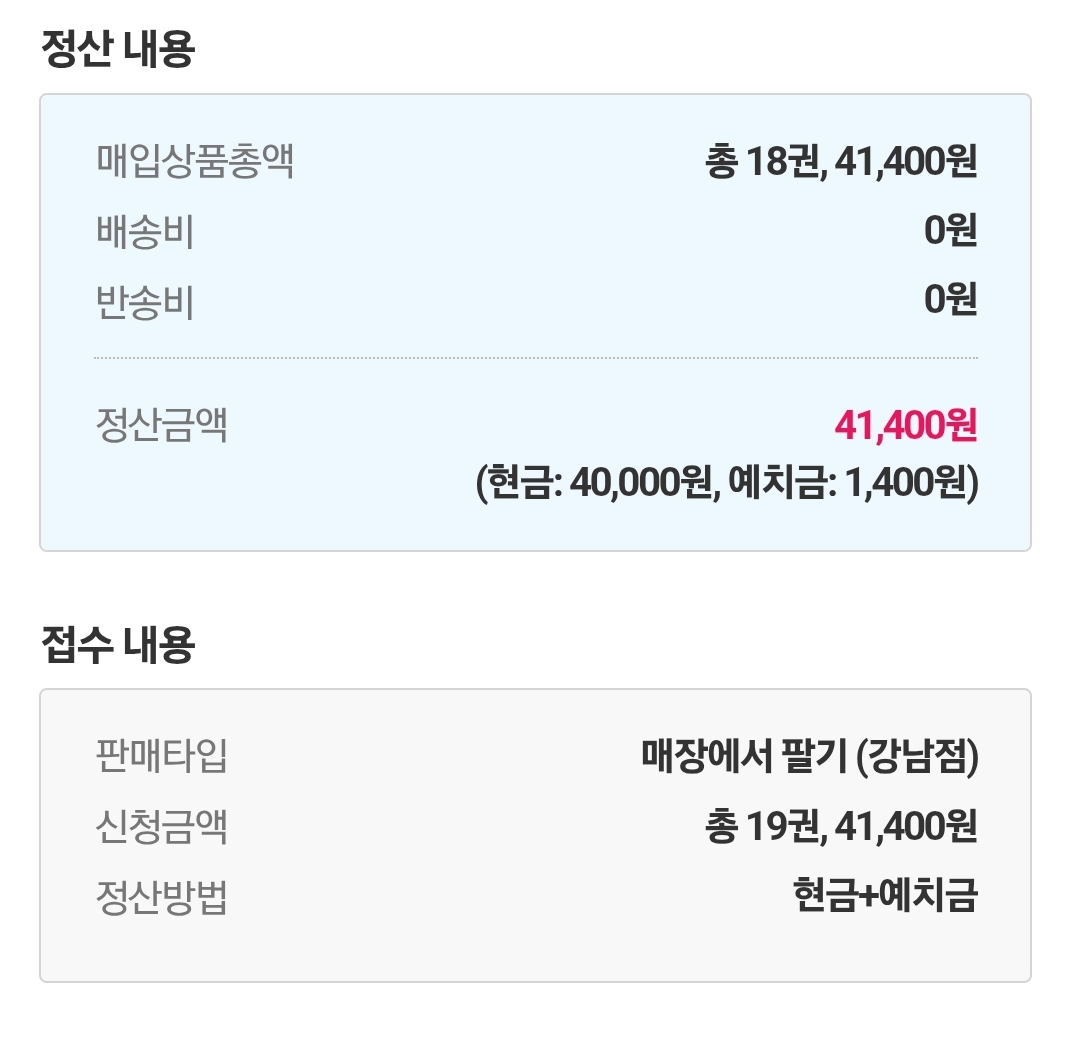 이렇게 모아진 책을 들고 중고서적에 방문하여 판매한 후 약 4만 원을 벌었습니다.