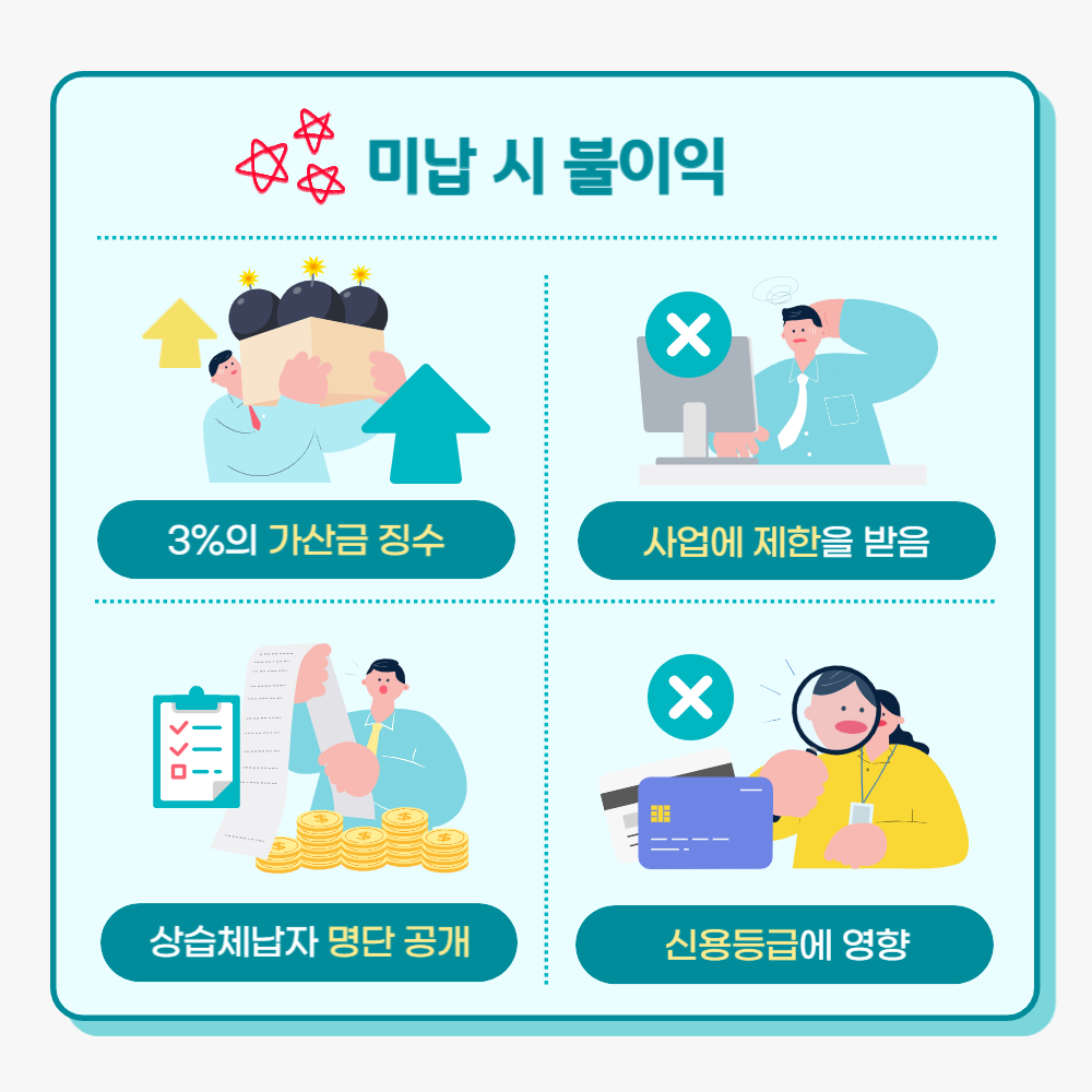 2. 체납 시 불이익: 가산금과 중가산금 발생, 장기 체납 시 압류 가능