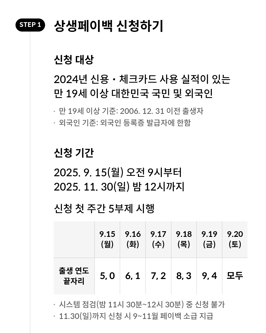 - 상생페이백신청방법: 카드사 앱 → 상생페이백 신청 배너 → 본인인증 → 카드등록 → 신청 완료