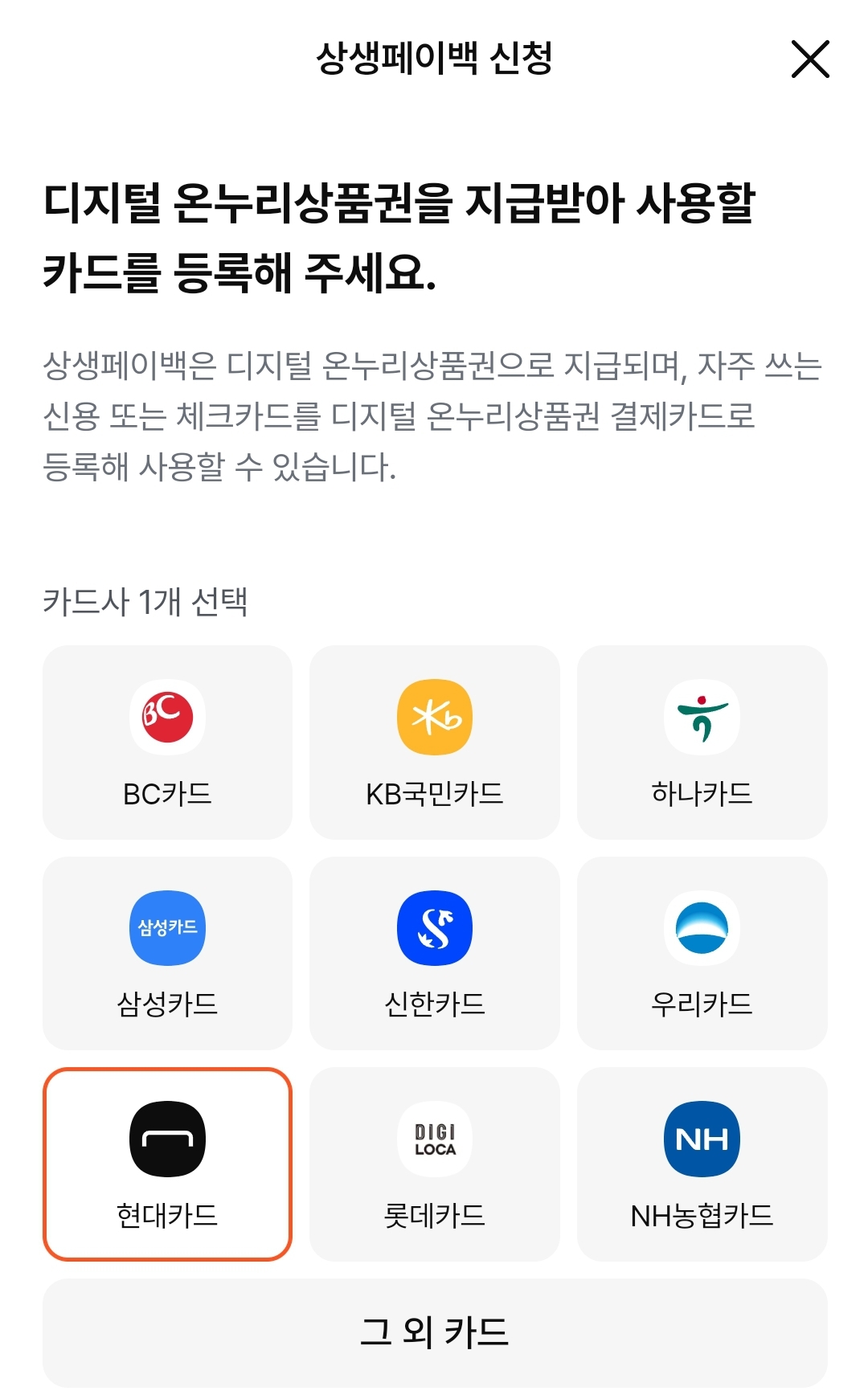 제가 쓰는 현대카드사(국민·신한·삼성·현대·롯데·우리 등 대부분 카드사 가능) 에서도