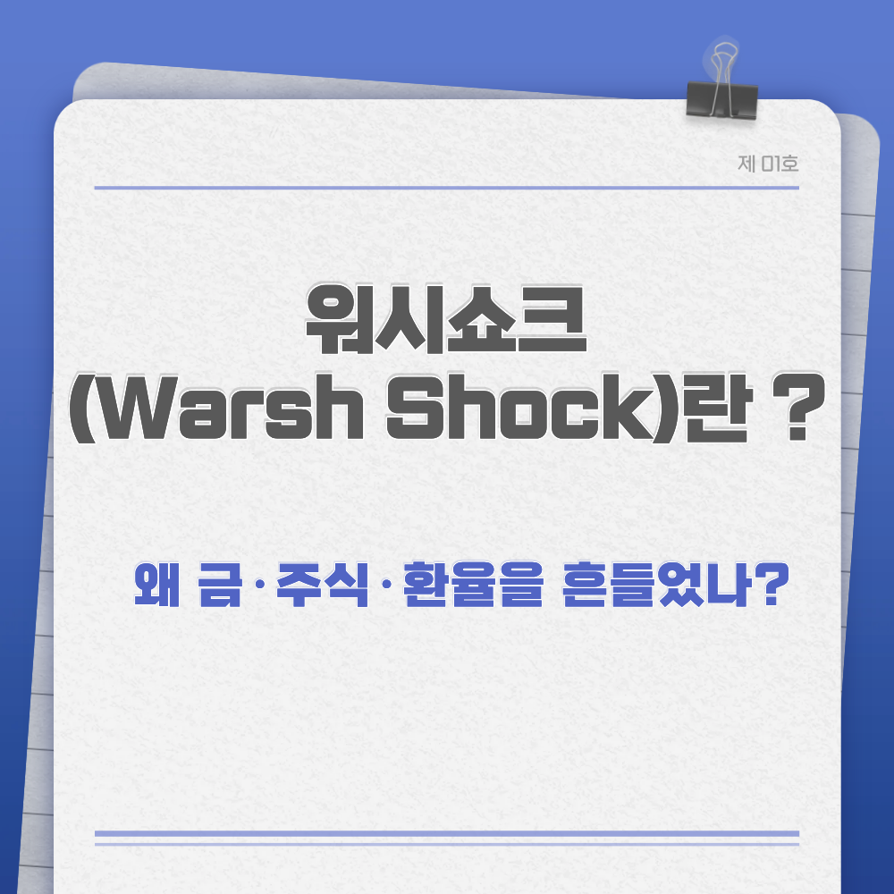 최근 글로벌 금융시장이 큰 충격을 받았습니다. 주식과 코인, 금리·환율까지 동시에 요동친 이 현상은 시장에 큰 변동성을 남겼는데요 바로 이 현상을 두고 금융권과 투자자들이 “워시쇼크(Warsh Shock)”라는 용어를 쓰고 있습니다.