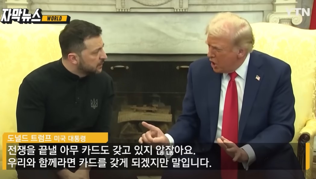 도널드 트럼프 미국 대통령과 볼로디미르 젤렌스키 우크라이나 대통령이 28일(현지시각) 백악관에서 열린 정상회담에서 격렬한 공개 설전을 벌인 끝에 예정된 공동 기자회견과 광물 협정 서명