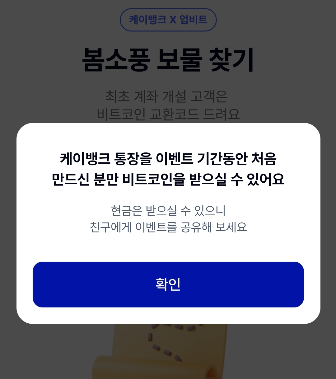 케이뱅크 앱 접속 -> 혜택 -> 100% 당첨 보물 찾기