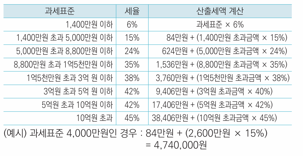 과세표준 구간에 따라 세율이 결정되고 최종 산출세액이 계산됩니다.