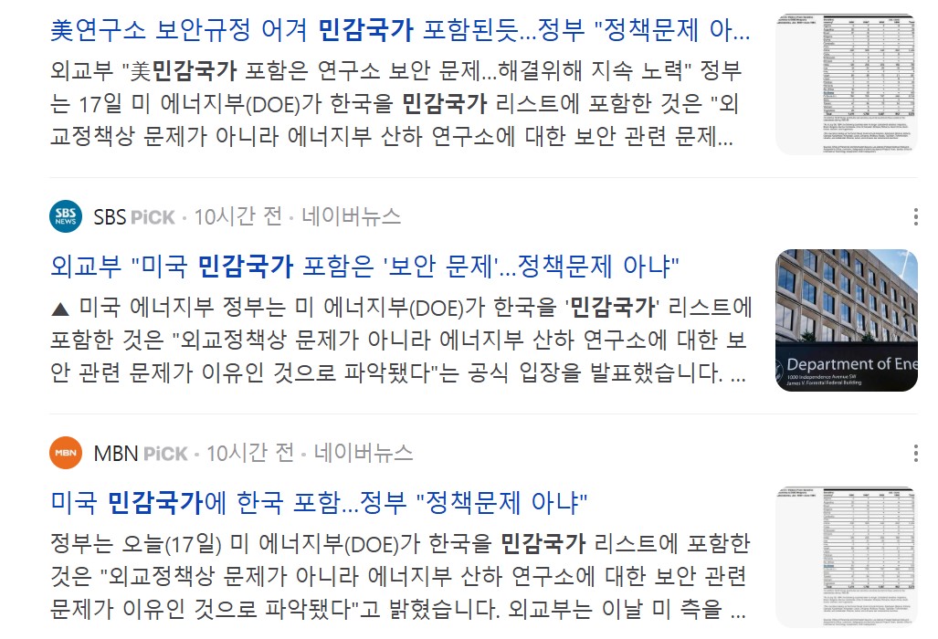 아침에 또 깜짝 놀랄 뉴스를 접했습니다. 최근 미국 에너지부(DOE)가 한국을 민감국가로 지정했다는 사실이 알려지면서 한국 경제와 산업에 미칠 영향에 대한 관심이 커지고 있습니다.