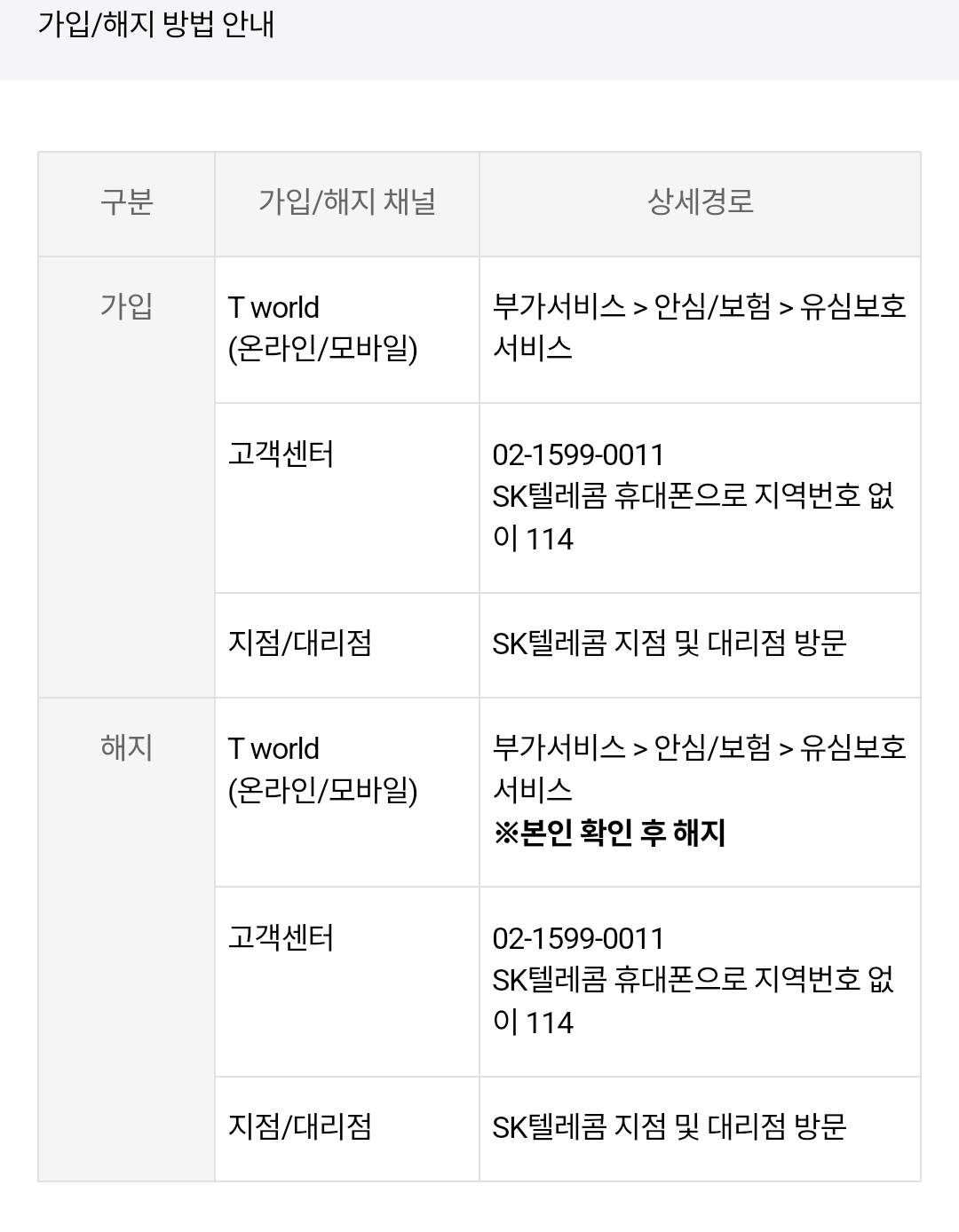 ✔️ 또는 SKT 고객센터/홈페이지에서도 신청 가능