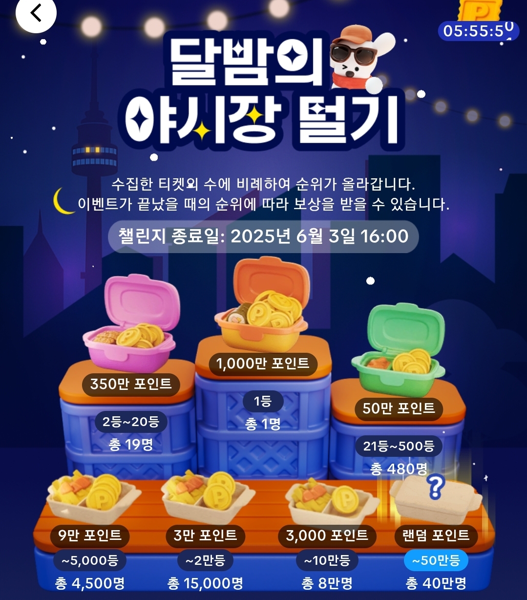 STEP 1. 6시간 마다 야시장 티켓 수집하면 등수가 올라감(3개 수집)