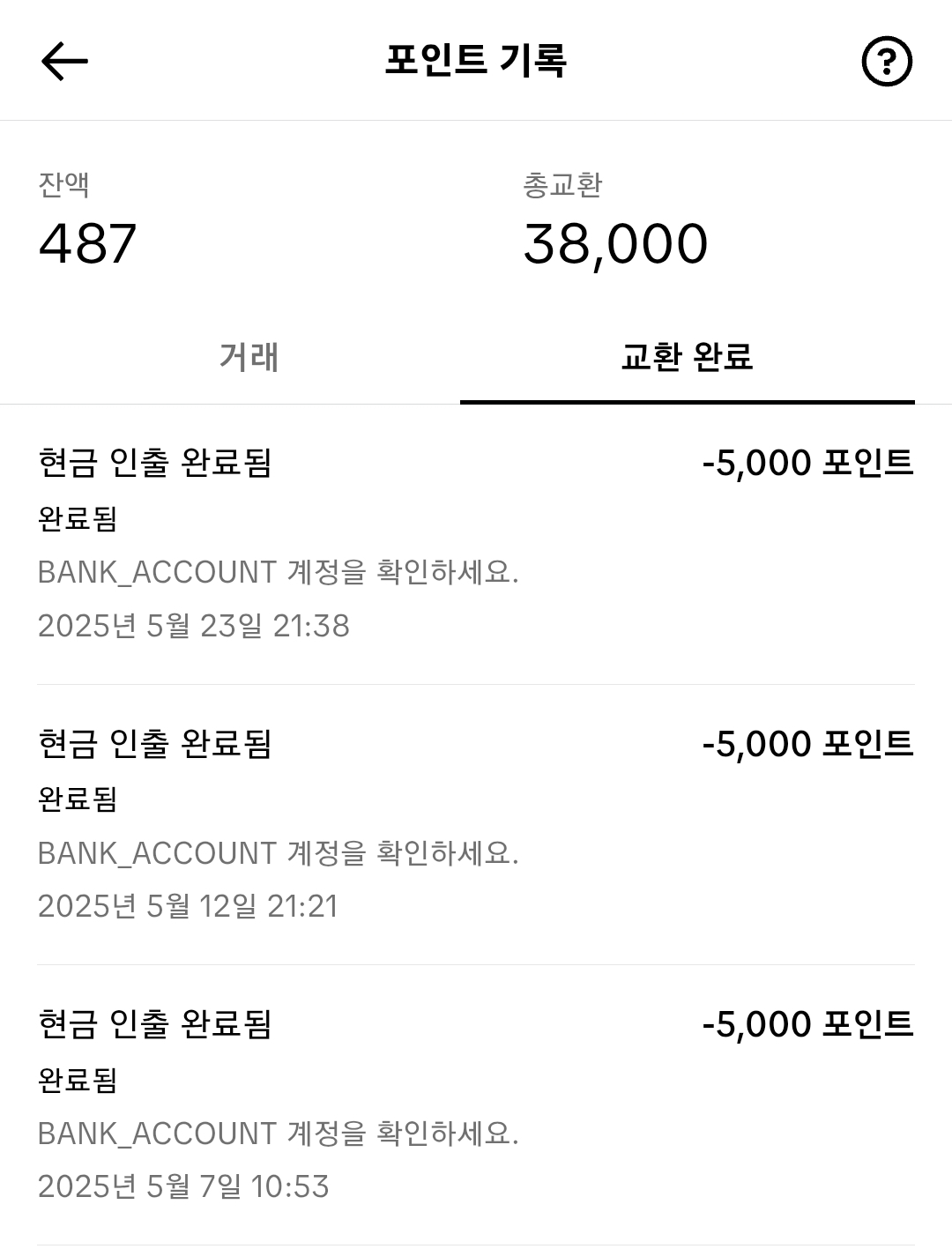 현재까지 약 3~4개월 총 38,487원 모았고 38,000원은 은행으로 이체를 했습니다.