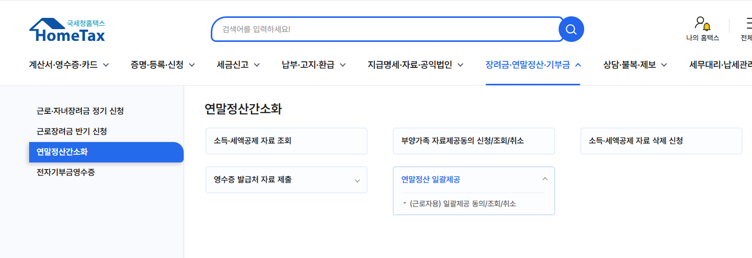 현재는 연말정산간소화 항목에서 연말정산 일괄제공 서비스는 확인 할 수 있습니다.