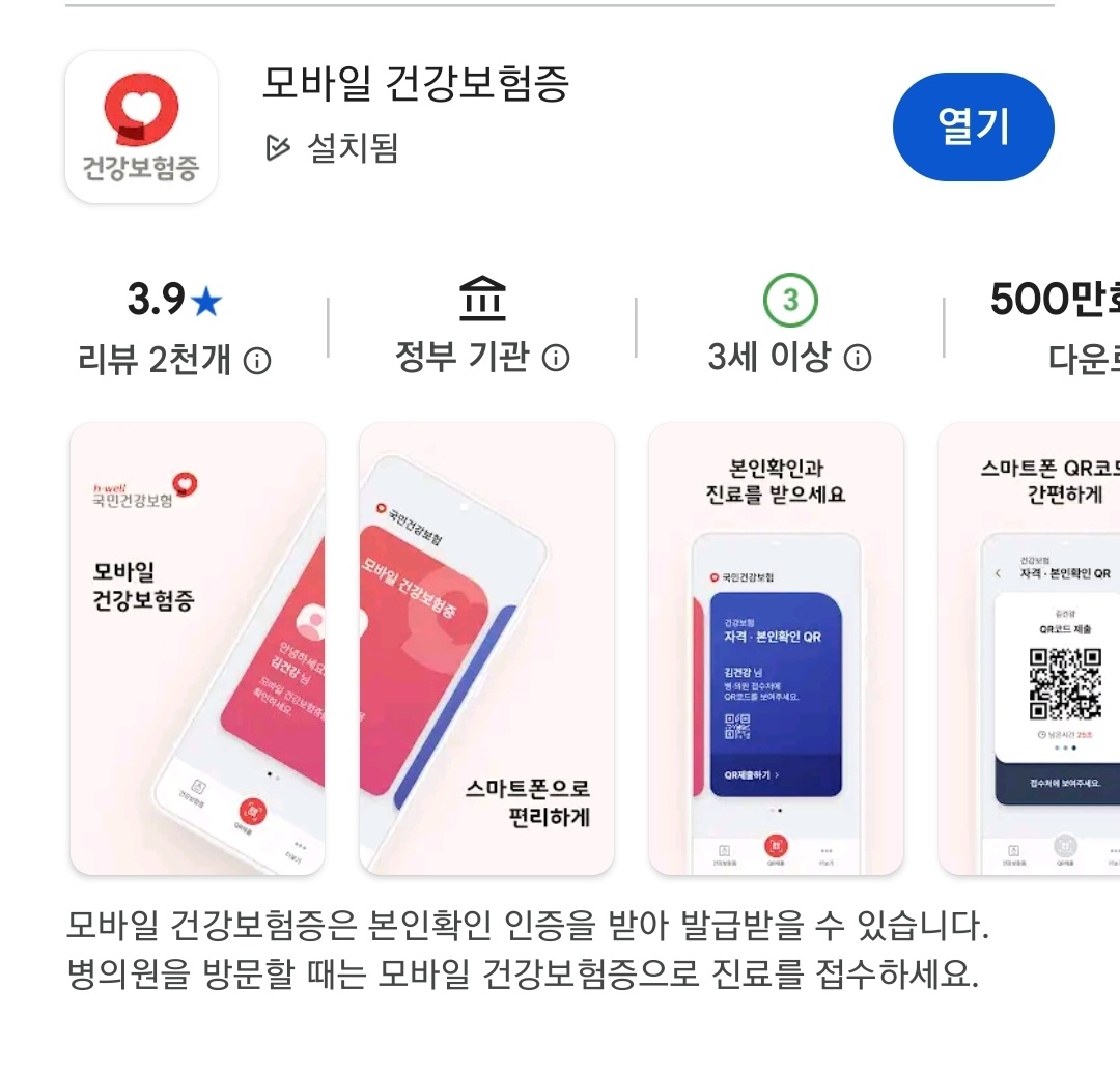 STEP 1. 앱스토어나, 플레이스토어에서 ' 건강보험증' 검색